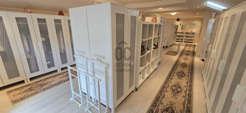 Az 50 m²-es beépített padlástér jelenleg teljes értékű gardróbként funkcionál, de kiválóan alakítható új lakótérré, irodává vagy hobbiszobává.