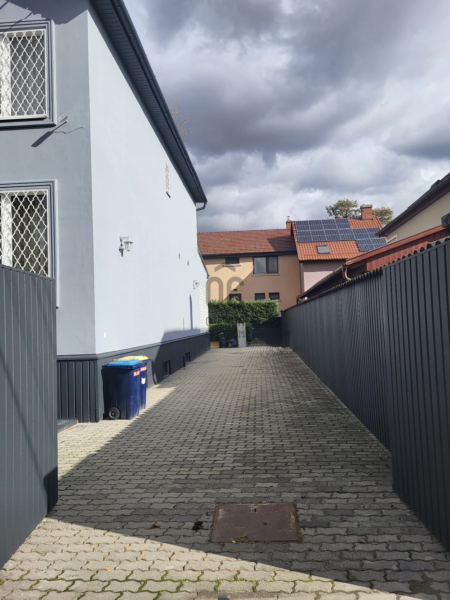 A lekövezett udvar akár 4 autó kényelmes beállását is lehetővé teszi, a ház előtti új kerítés és modern kapurendszer pedig elegáns megjelenést kölcsönöz az ingatlannak.
