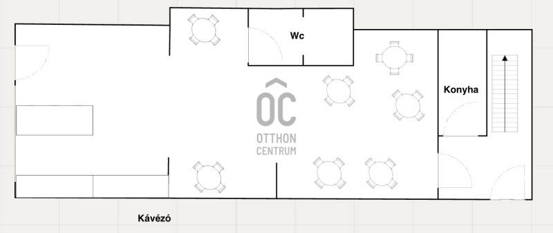 Az alsó szinten utcai és udvari bejárattal is rendelkező, jelenleg is működő és profitábilis kávézó található, amely stabil bevételt biztosít új tulajdonosának. A frekventált elhelyezkedés és a közvetlen utcai megközelítés ideális vendéglátóipari vagy akár más üzleti tevékenység folytatására is.