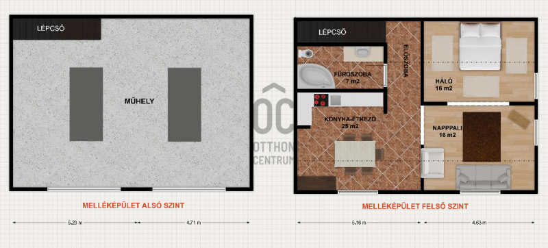 >> az udvaron különálló, téglaépítésű épület alsó szintjén egy