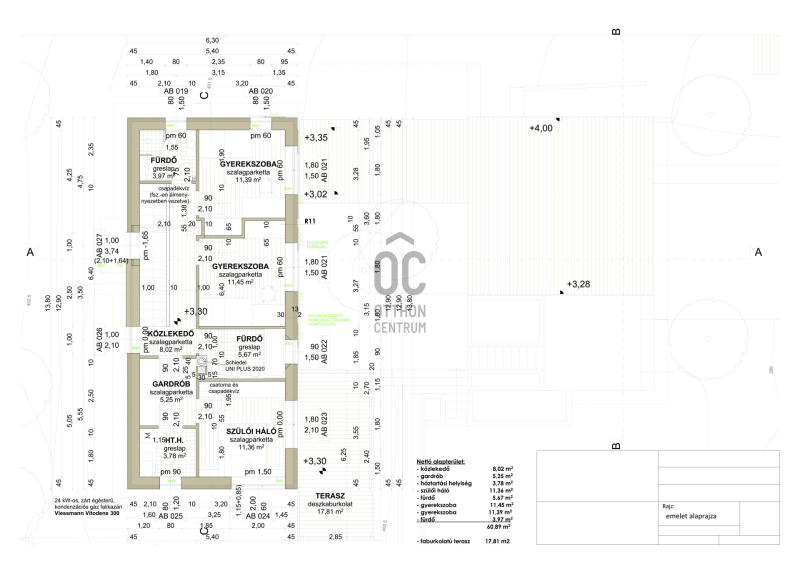 - parkolás: 2 állásos garázs + nyitott beálló