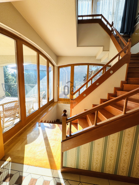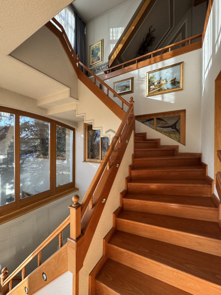 A faburkolatú, üvegkorlátos lépcsőháza ház egyik legszebb, látványos eleme.