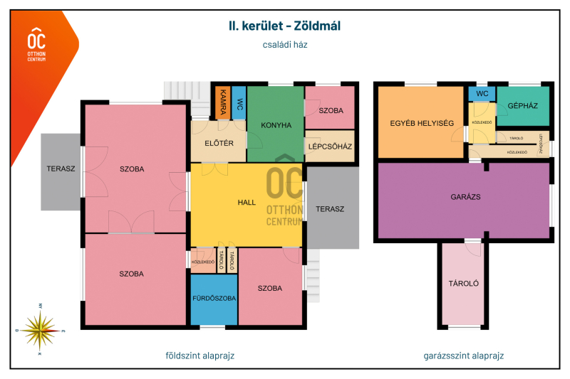 Épület: bruttó 164 m² (nettó 108 m²) , teraszok összesen 24,8 m²