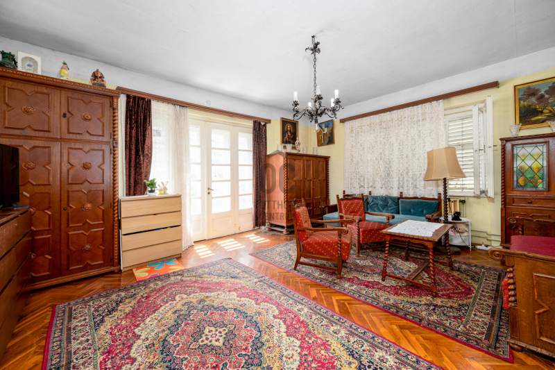 Elrendezés: földszinten nappali, hall, 3 hálószoba, konyha, fürdőszoba, kamra, WC, tárolók, a pinceszinten garázs és tárolók, WC