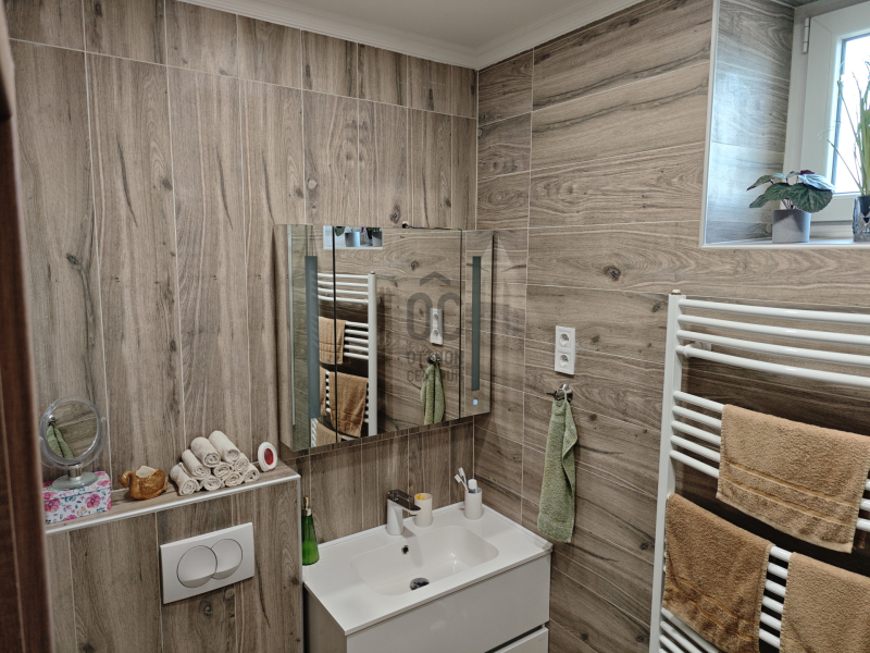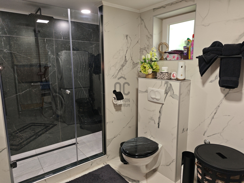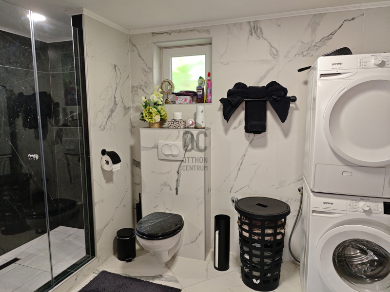 A második, önálló bejáratú lakóegység szintén teljeskörűen felújított, minden szükséges közművel ellátott.