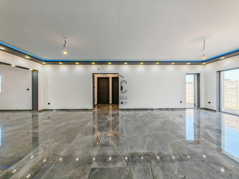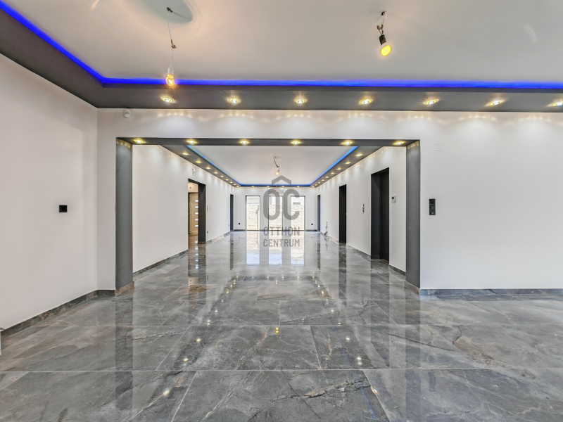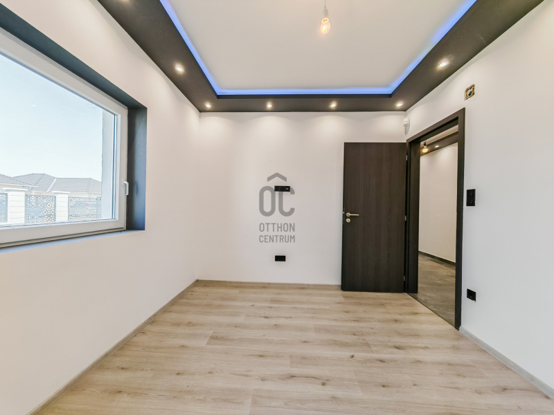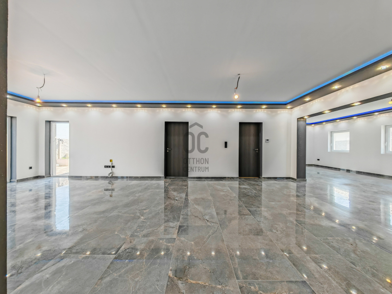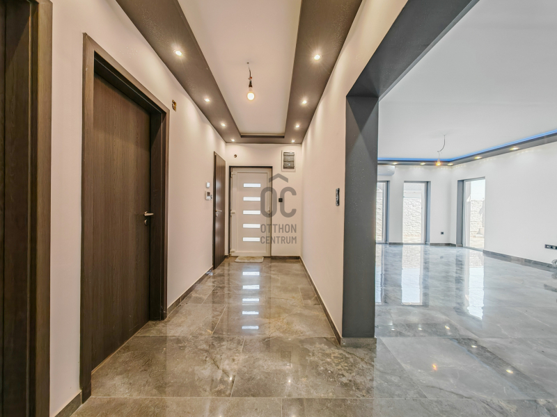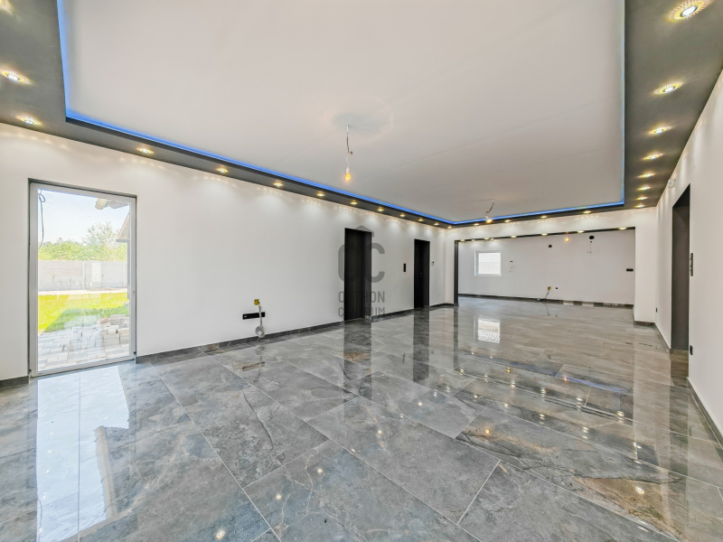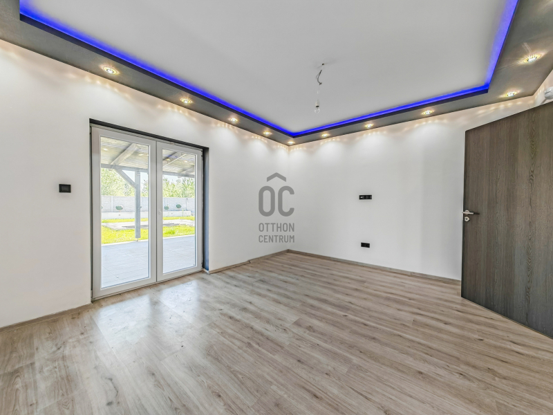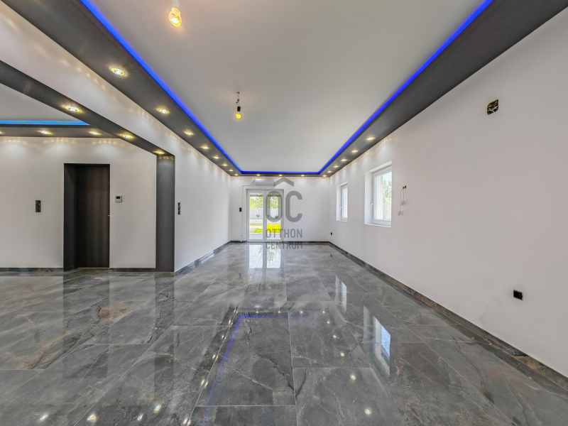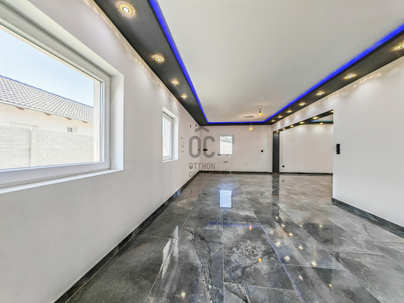 A ház belső tereit LED hangulatvilágítás díszíti, ami különleges atmoszférát teremt, miközben a 77 nm-es amerikai konyhás nappali a középpontja a családi együttléteknek.