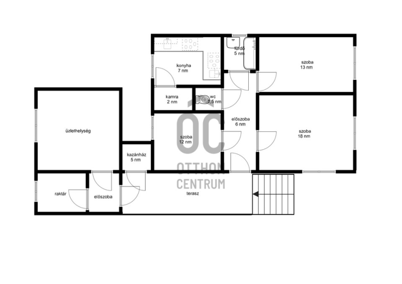 A ház hátsó részen egy cca. 26 nm-es bolt helység ( mellék épület ) van a házhoz építve a házhoz. Jelenleg az új cirkó kazán ide van elhelyezve. Az ingatlannak ez a része nem került szigetelésre. Jelenleg két szobábol áll és üzlethelységként funkcionált.