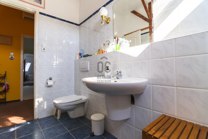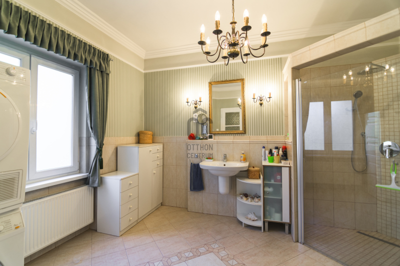 A házban lévő meleg- és hidegburkolatok jó minőségűek, újszerű állapotúak. A fűtés korszerű, zárt égésterű kondenzációs gázkazánról üzemel. Mindkét lakószinten split klíma is üzemel. A ház 380V-os ipari árammal is ellátott és külön mért éjszakai árammal is rendelkezik. A tető 5 éves, a külső nyílászárók újak; a belsők újak, illetve a ház stílusát megtartva modernizálásra, felújításra kerültek.