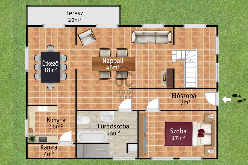 Az ingatlanba belépve tágas előszoba érkezünk mindennek van helye innen nyílik egy balra egy hálószoba, és hatalmas fürdőszoba.