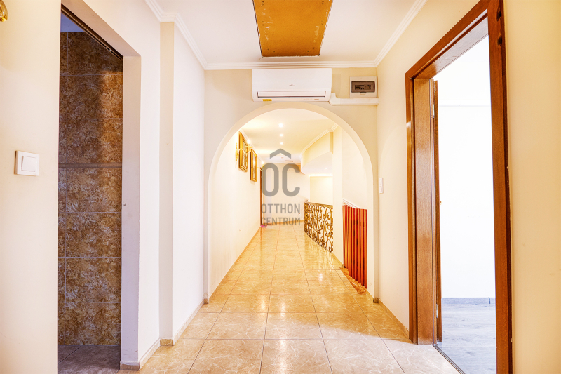 A ház műszakilag és építészetileg is jó állapotú, minimális átalakítással akár két önálló lakásként is használható.