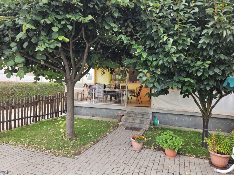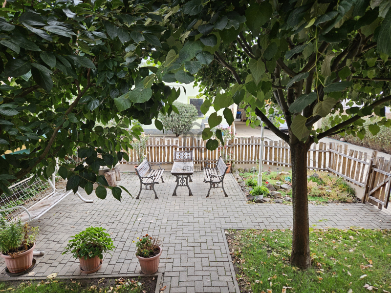 - Az udvar parkosított, a fúrt kútról öntözhető kertben örökzöldek, gyümölcsfák, konyhakerti növények (fóliasátorban) találhatók.