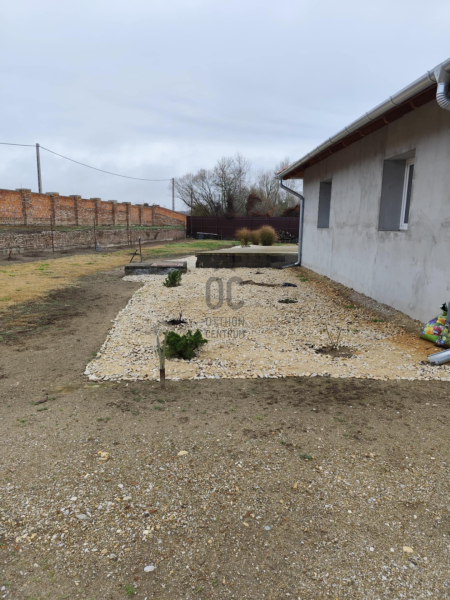 Egy 2 szoba konyha, étkező, fűrdőszoba, WC-s ház alapja, melybe már a vllany, viz, és szenyvízcsatorna kiépítése is megtörtént.