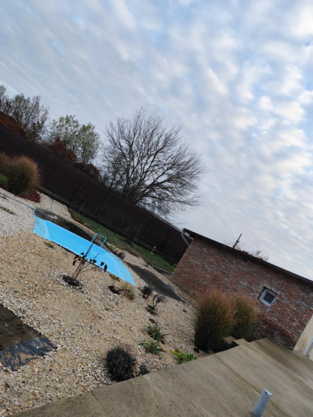 A telek új lemezkerítéssel körbekerített, elektromos kapuval rendelkezik.