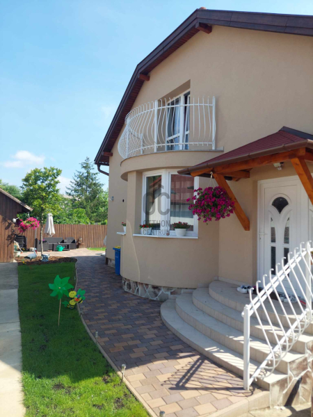 A kert rendezett, térkövezett és füvesített – azonnal birtokba vehető, gondozott környezet.