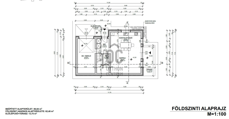 Földszint helyiségei : konyha - étkező - nappali, + terasz + garázs