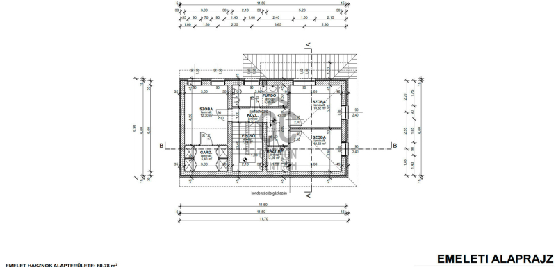 Emelet helyiségei : 3 szoba, fürdő, háztartási helyiség + az egyik szobához gardrob szoba.