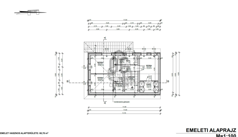 Emelet helyiségei : 3 szoba, fürdő, háztartási helyiség + az egyik szobához gardrob szoba.