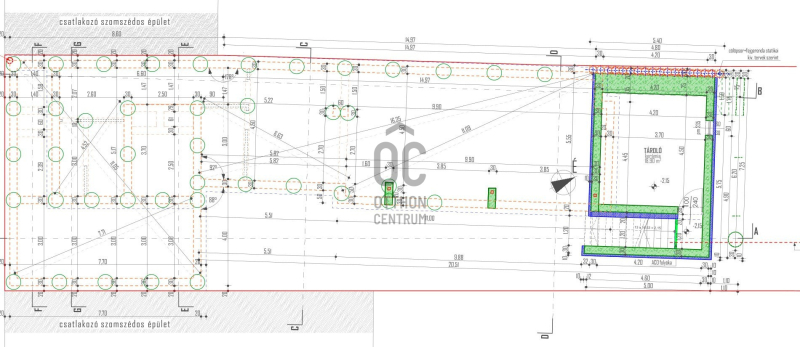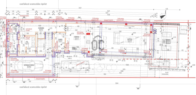 Az ingatlan zártsorú beépítéssel, 349 m2-es telken épült, A + energia besorolású, földszint + emelet kivitelű.