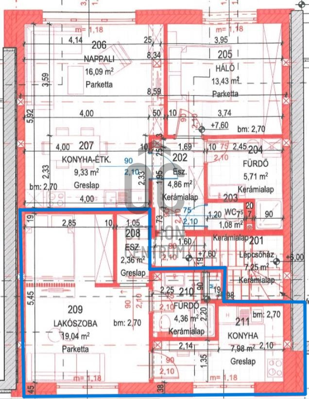 Fűtése távfűtés egyedi méréssel.