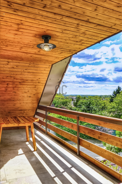 Az alsó szinten nappali, étkezős konyha, hálószoba, fürdő és közvetlen teraszkapcsolat biztosítja a kényelmet. A 37 m²-es terasz leanderekkel, kerti bútorral és napernyővel a nyári esték tökéletes helyszíne – innen hallhatjuk a szarvasbőgést vagy épp gyönyörködhetünk a csillaghullásban..!