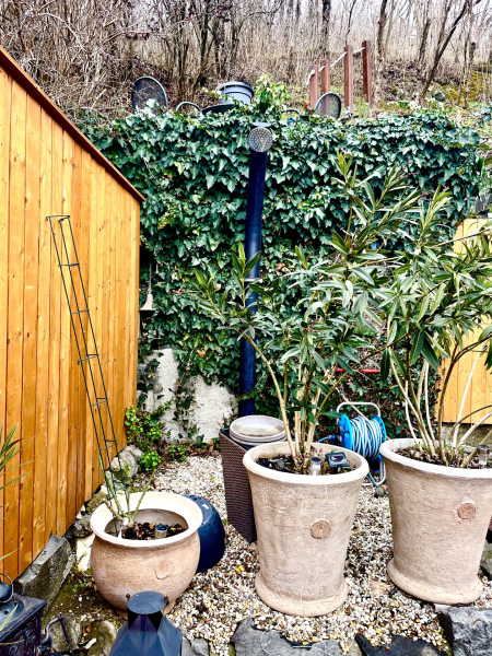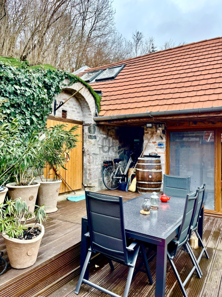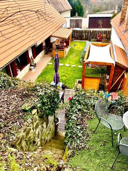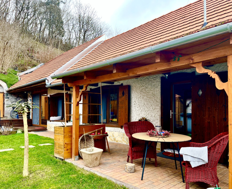 A kertben van egy fatároló, egy hangulatos borospince ill. két terasz is. A WPC-vel burkolt kényelmes méretű terasz tökéletesen alkalmas akár egy nyugágyban eltöltött pihenésre, akár baráti összejövetelek, grillezések megrendezésére. A forró nyári napokra felkészülve egy szenzoros kerti zuhany is helyet kapott.