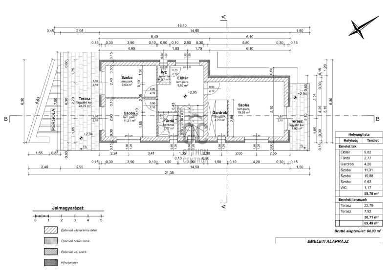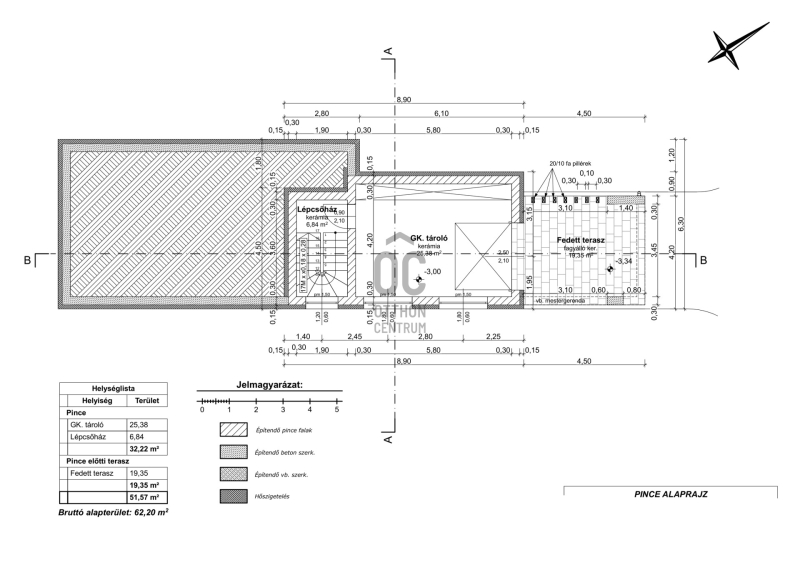 Az épület szerkezete 30-as téglából épül, és 15 cm homlokzati szigetelést kap. A tető lapos tetős kivitelben készül.