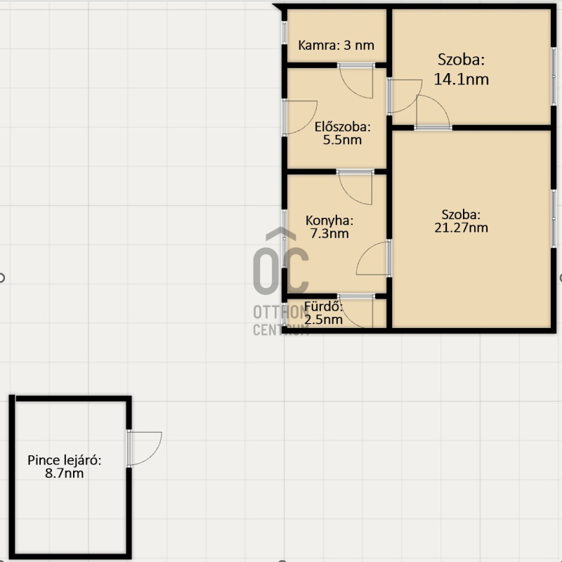 10,8 m²-es különálló épület pincével