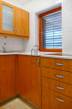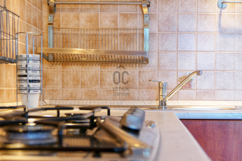 a másik rész ( 20nm) is két helyiségből áll, egy konyha- étkezővel, és egy nagy tároló, beépített bútorokkal, szekrényekkel