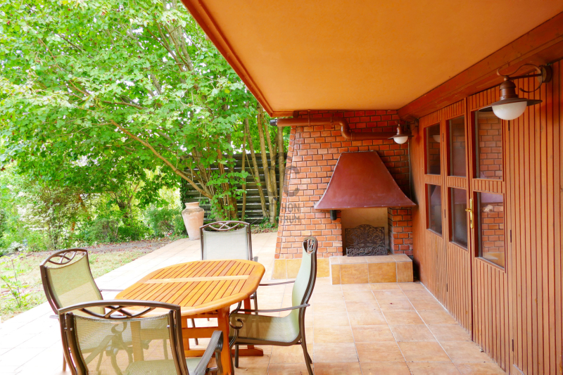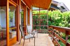 - előkertben fenyőfák adják az árnyékot a kövezett terasz részre