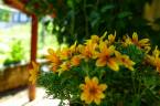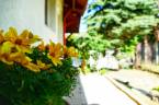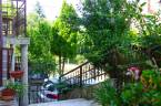-teraszok terméskövekkel tagolt, sziklakerti növényekkel díszített részekből áll.