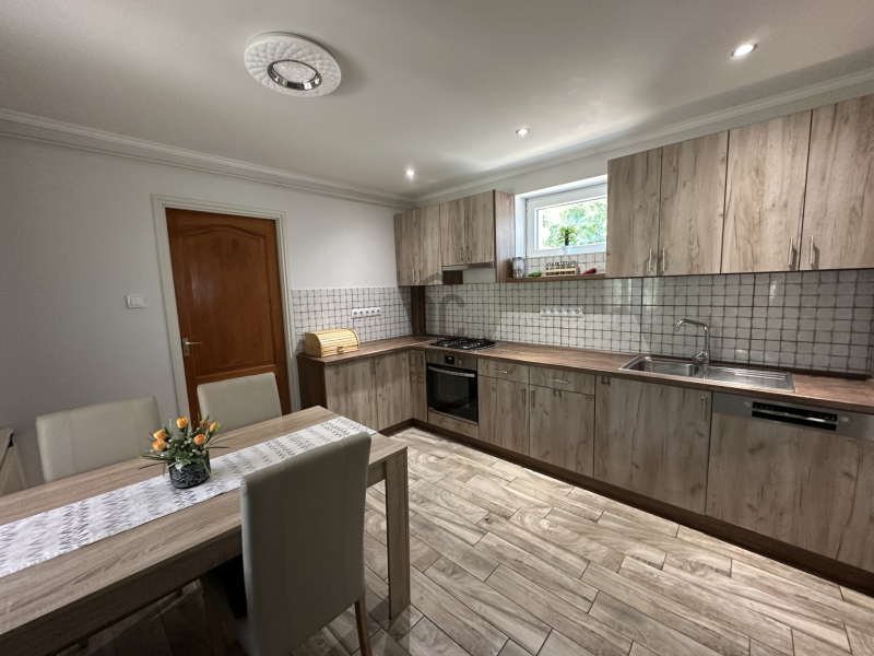 - Kettő szoba, előszoba, konyha étkezővel, kamra, fürdőszoba, különálló WC kézmosóval lett kialakítva