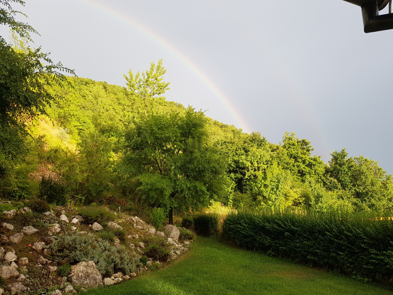 - fürdőszoba világos, sarokkádas, természet közeli , viszont intim a nagy ablakok miatt.