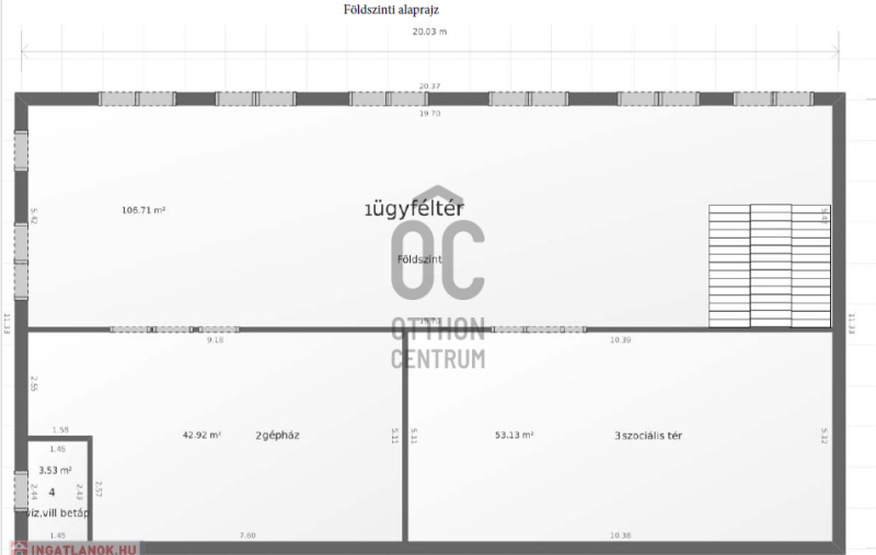 Az üzlethelyiség két szintes, melyből az emeleti szint valójában galéria. Bejárata a tér és a Hunyadi utca közötti parkolóból, átjáróból nyílik. Kirakatai a tér felé néznek. Belső tere a földszinten nagy ügyféltér, valamint szociális rész és gépház. Az emeleten galériaszint kapott helyet szociális blokkokkal és egy tér felé néző és nyíló terasszal.