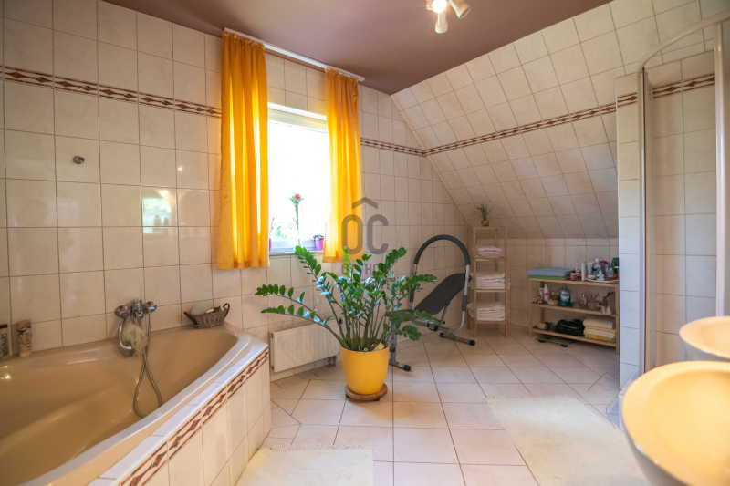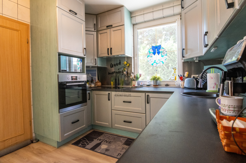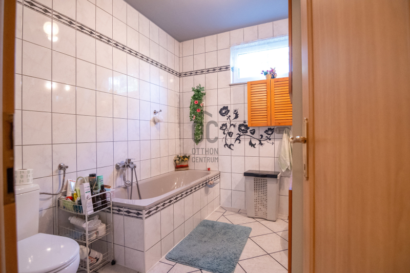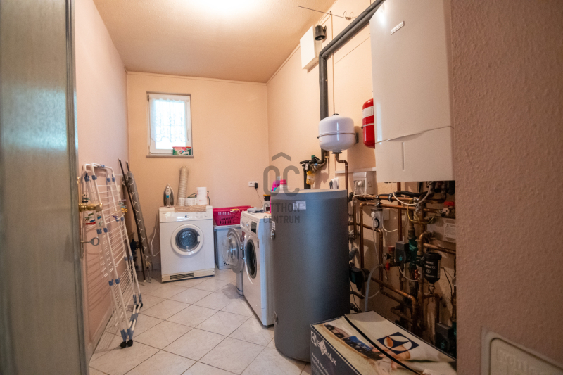 A konyha gépesített, kb. 10 éves, es mellette van egy spajz. A teljes szint körbejárható. Külön helyiségben van mosókonyha, ahol a Boch kazán 2 éves, és mely mellett vízlágyító gép is van.