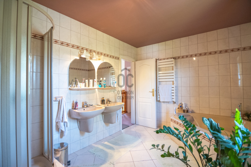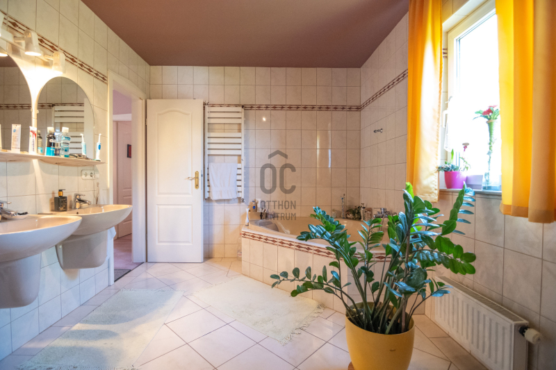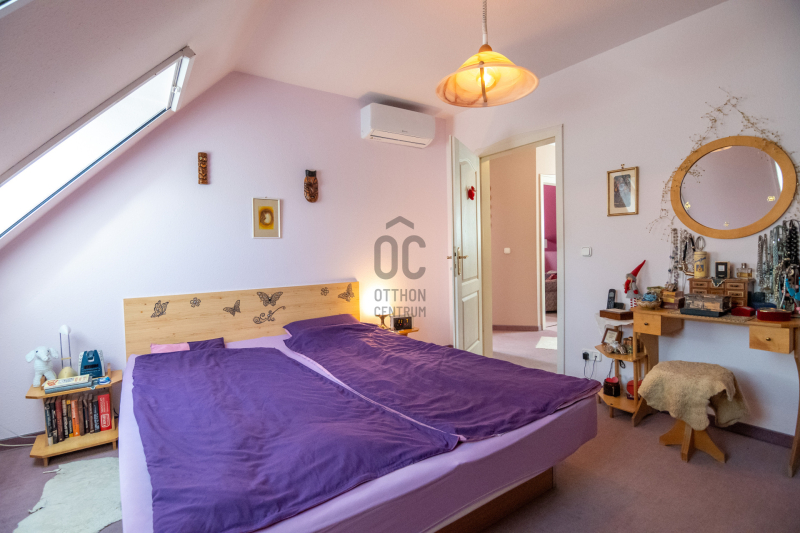 Egy hálószoba és fürdőszoba a földszinten van, így két generáció össze költözésére is ideális új otthon lehet ez a ház. A nyári melegben 5 db klíma gondoskodik a hűtésről.