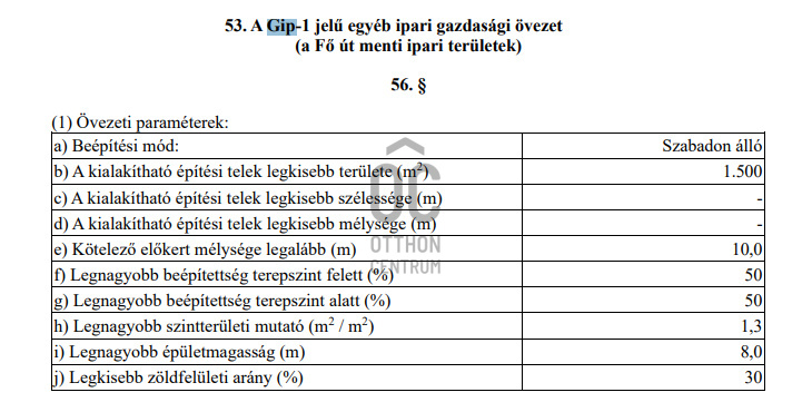 GIP-1 – egyéb ipari gazdasági övezet (Fő út menti ipari területek)