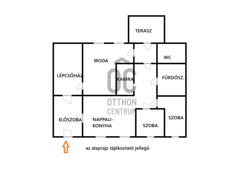 - földszint cc 100nm-s : nappali-konyha, 2 hálószoba , kamra, fürdőszoba, és egy külön iroda helyiség mosdóval , található