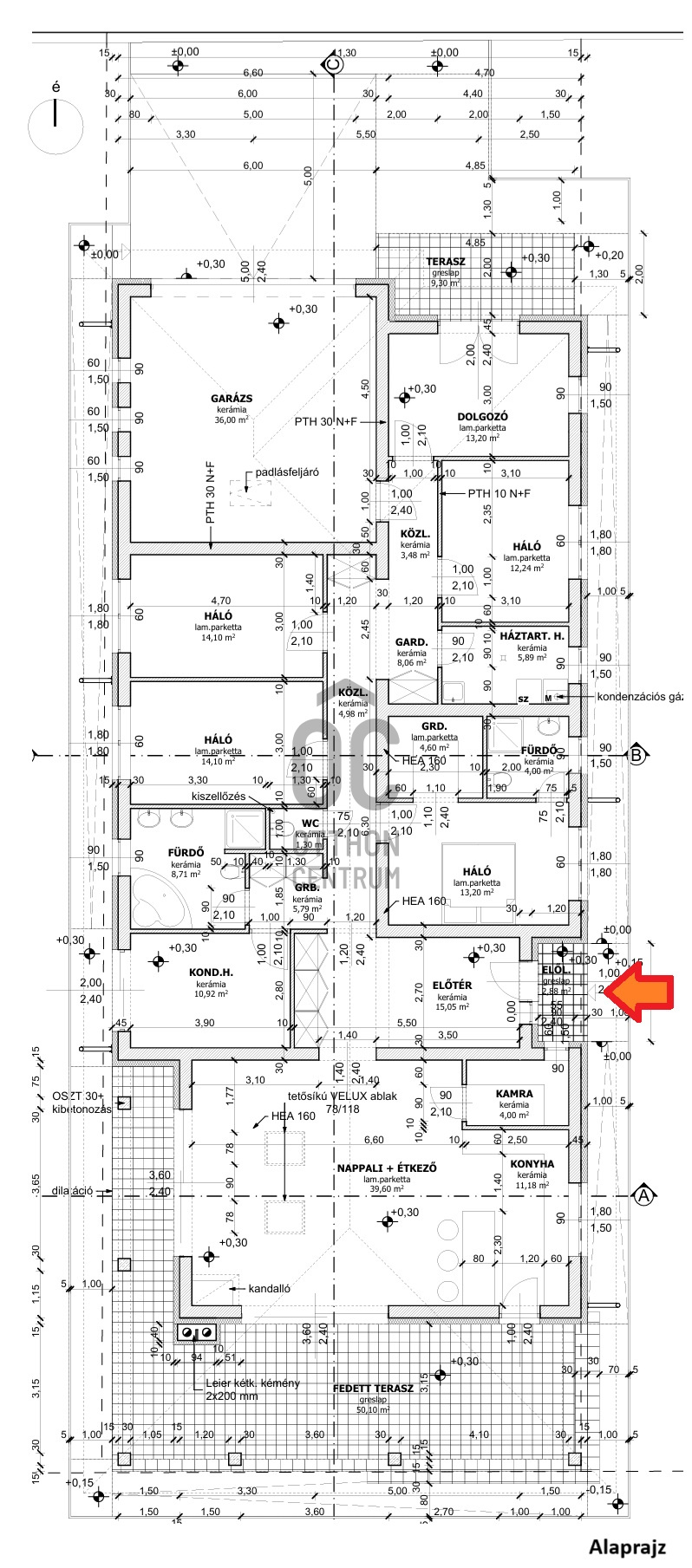 - padlófűtés a nappali–étkező–konyha térben