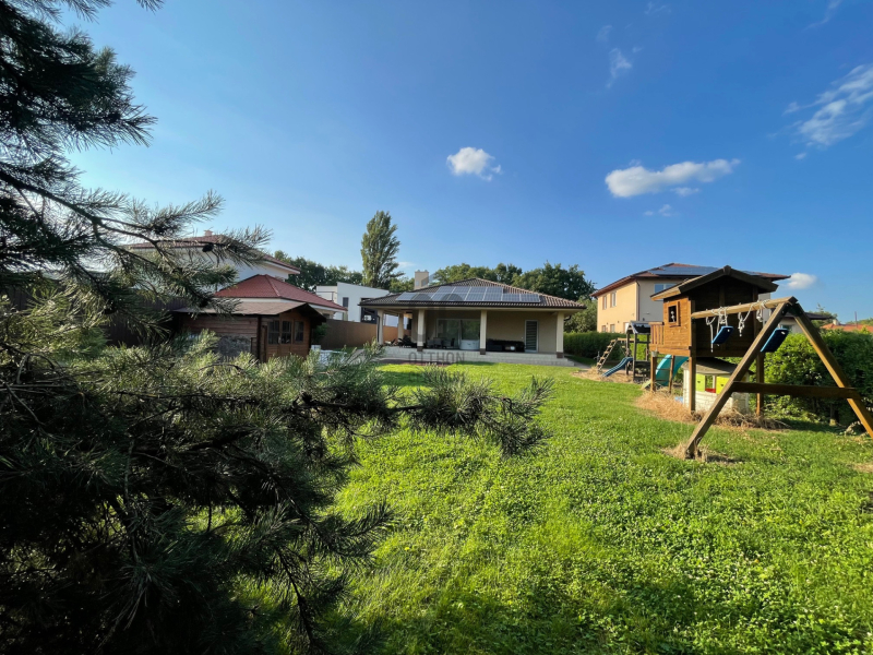 Csendes, kertvárosi környezetben, 1346 m²-es, teljes közműves telken eladó egy 2017-ben épült, egyedi tervezésű, kiváló állapotú családi ház, kiemelkedően alacsony fenntartási költségekkel és magas műszaki tartalommal.