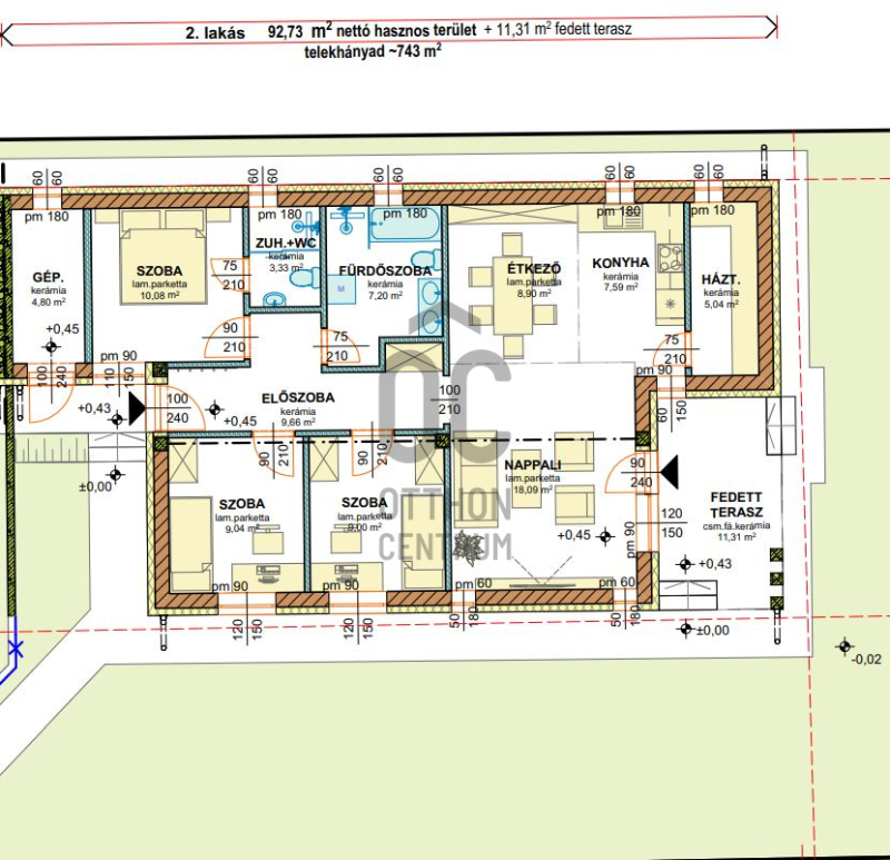 - saját udvarrész 740 m2