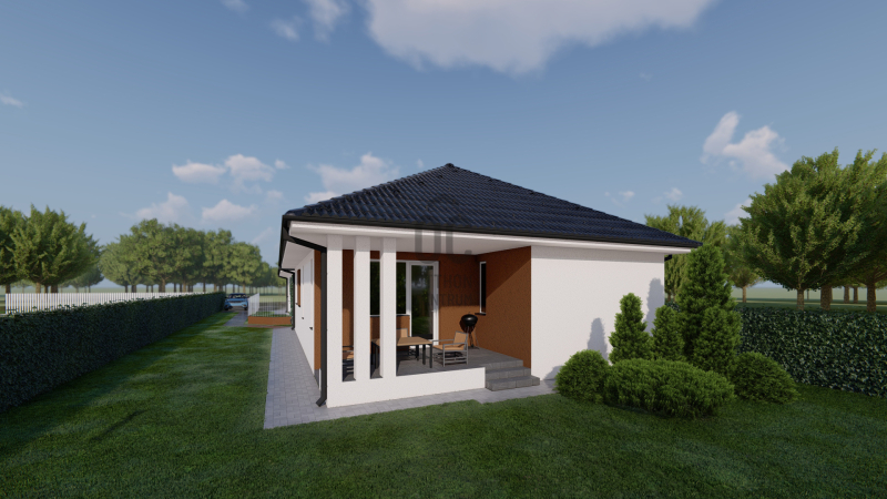 -nappali-konyha étkező 1 légtérben mely csatlakozik egy 12 m2-es fedett teraszhoz