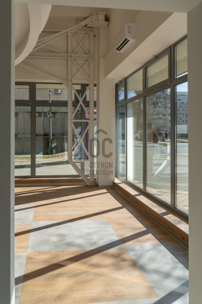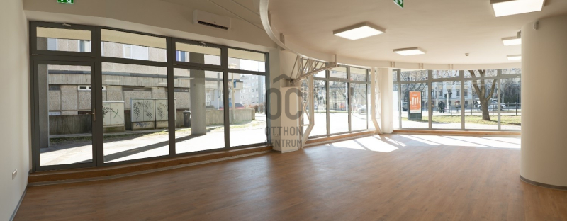 -nagy, üvegezett kirakat a földszinten