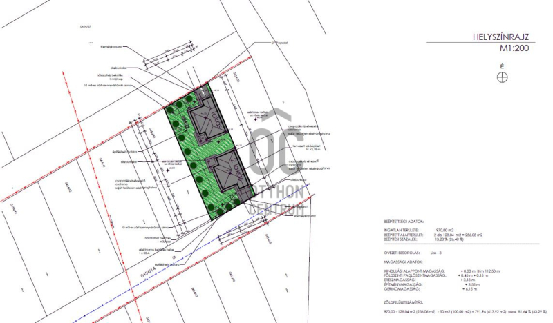 * beépített alapterület: 26,42 % ingatlanonként pedig 128,047 m2