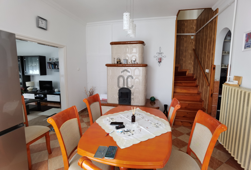 - Kényelmes nappali, amely egy remek közös tér a családi összejöveteleknek, amiket egy cserépkályha tesz hangulatossá.