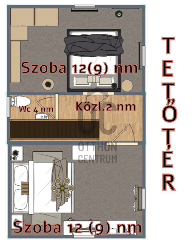 - 33 m² alapterület + beépített tetőtér