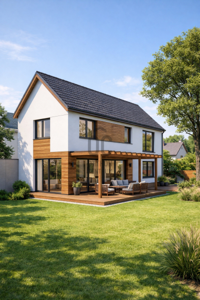 A beépítés módja szerint a lakóépület oldalhatáron vagy szabadonálló lehet.