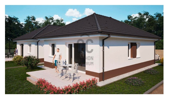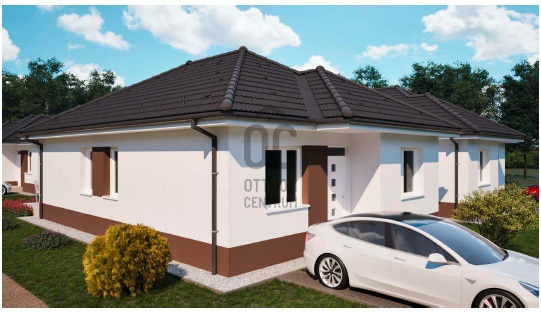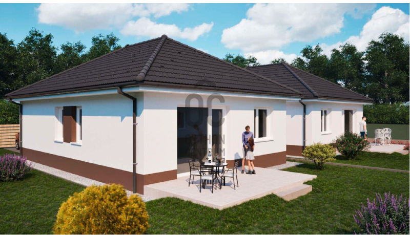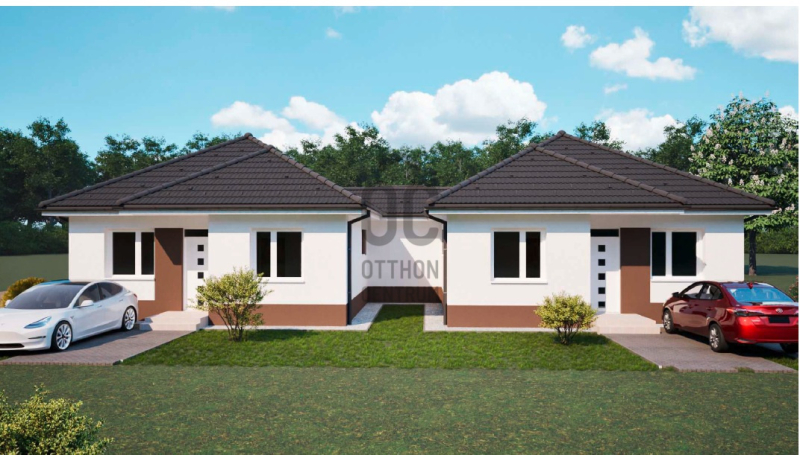A FÖLDSZINTES ikerház Nappali+3 hálószoba, fürdőszoba, háztartási helyiség, kamra, előszoba, külön mellékhelyiséggel épül meg, gépkocsi beálló hellyel.