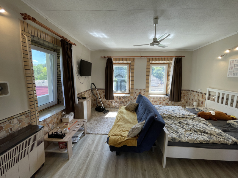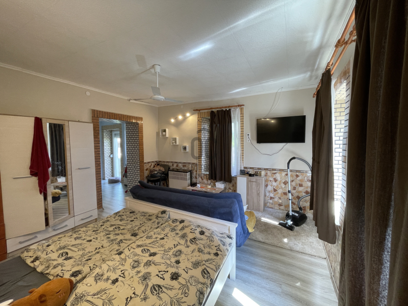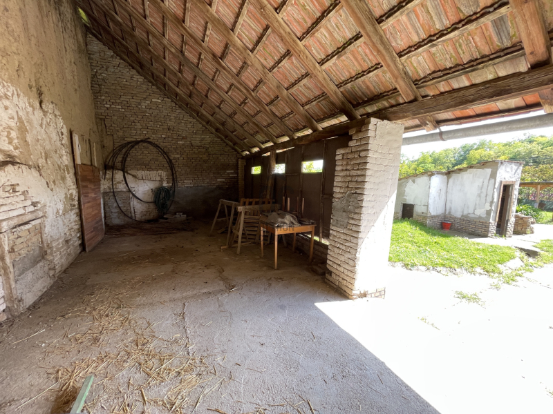 A szekszárdi dombok panorámáját élvezhetjük a tornácról, ami a lakótér előtt húzódik végig 1,2 méter mélységben, 15,5 méter hosszan és egy fedett terasszal zárul. Innen érhető el egy kamra, ami akár lakótérré is tehető. Kibontható egy nyílás a főzőfülke irányába. Itt továbbhaladva az épületen található egy különálló istálló (kb 40 m2) és a partoldal alatt is van egy fedett nagy méretű rész. Innen juthatunk fel a padlásra és kisebb autóknak garázsként is használható. Ha innen kilépünk juthatunk fel egy lépcsőn a partfal tetejére és a mögötte levő területre, ami még az 1730 m2-es telekhez tartozik. Egy őz család jár be legelni innen a kerítéshez! :)