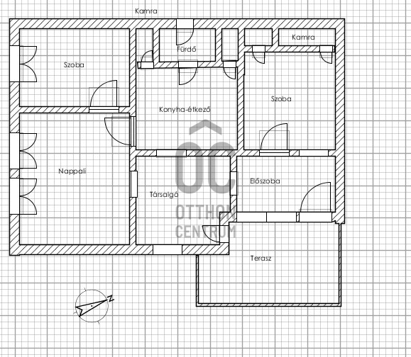 A házban jelenleg három tágas szoba, étkezős konyha, társalgó, előszoba, két kamra, két mosdó található.