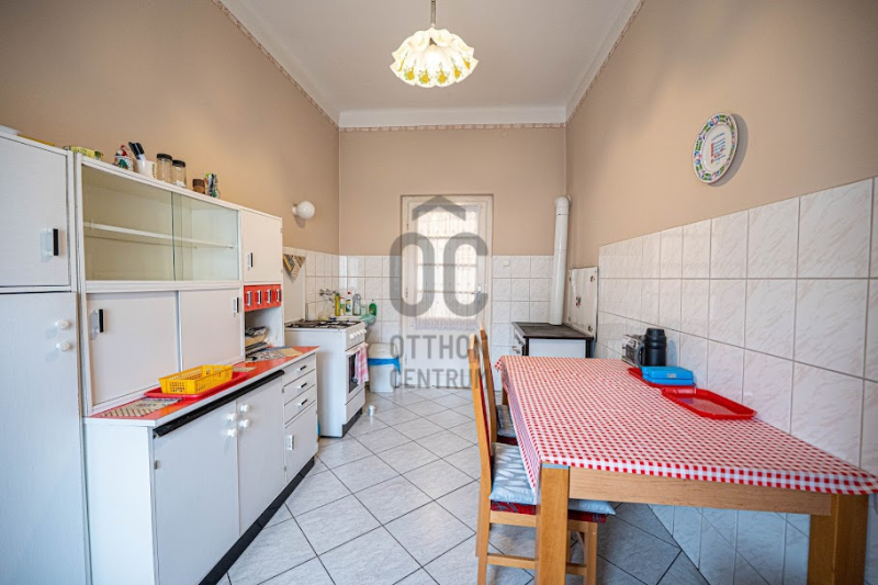 88 m2-es melyben van 3 szoba, konyha, fürdő, WC, spájz és közlekedő.